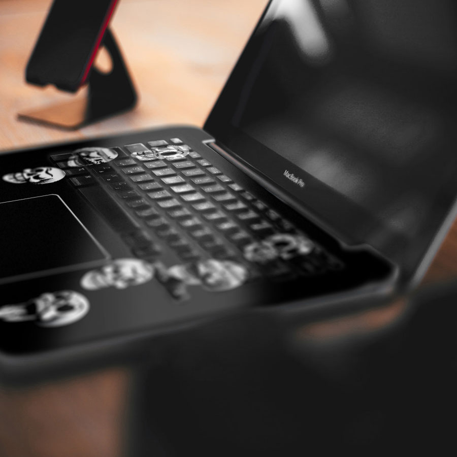 اسکین یکپارچه استراحتگاه و کیبورد طرح Skull Pattern Black & White
