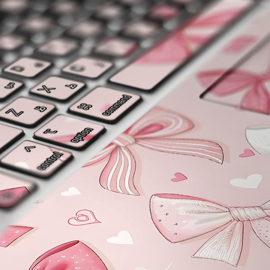 اسکین یکپارچه استراحتگاه و کیبورد طرح Tied Pink Bow